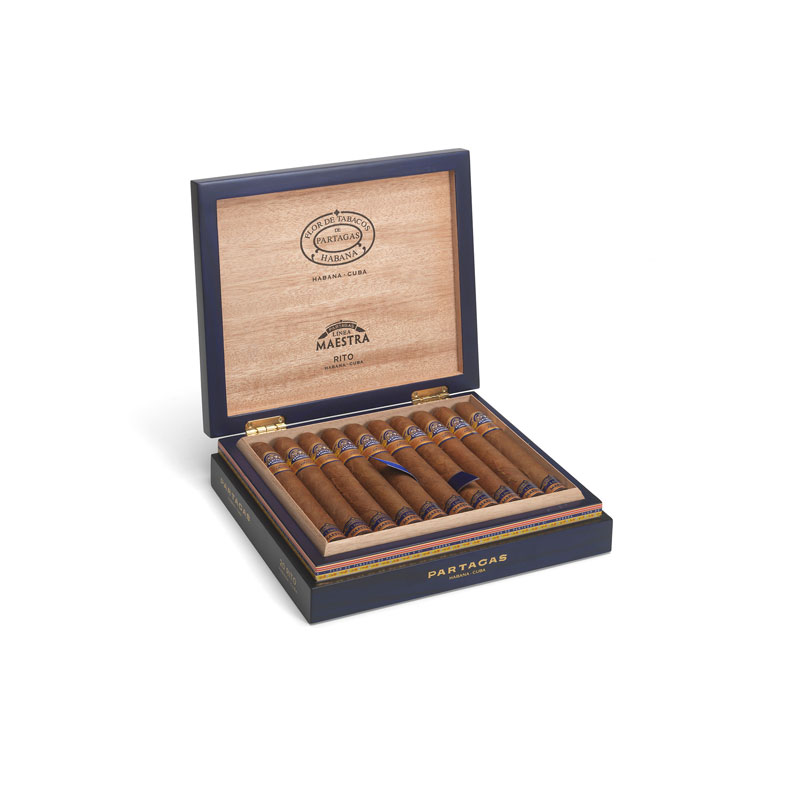 The Partagas Linea Maestra Rito exemplifies Cuban craftsmanship, offering a majestic smoke with a bold 54 ring gauge and an elegant 6⅝ » length. This medium to full-strength cigar showcases the finest leaves from the Vuelta Abajo region, with layered notes of cedar, roasted coffee, and spice. The Rito‚Äôs grand vitola and rich complexity make it a standout in the Linea Maestra collection.
